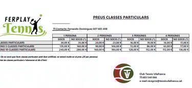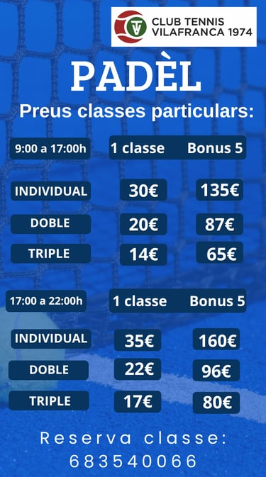 Al Club Tennis Vilafranca oferim classes de tennis per a totes les edats i nivells, des d’iniciació fins a perfeccionament i competició. Els nostres entrenadors qualificats adapten les sessions a les necessitats de cada jugador, ajudant a millorar la tècnica, la tàctica i la condició física en un ambient motivador i professional.
