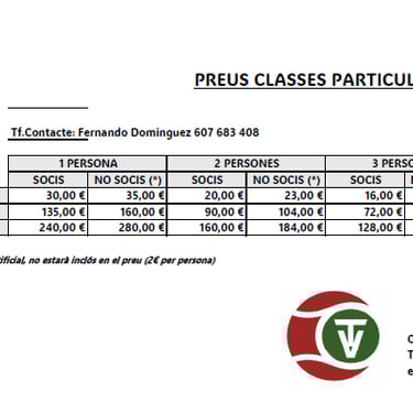 Classes particulars: individuals, per parelles i amb grup de 3 o 4 persones.