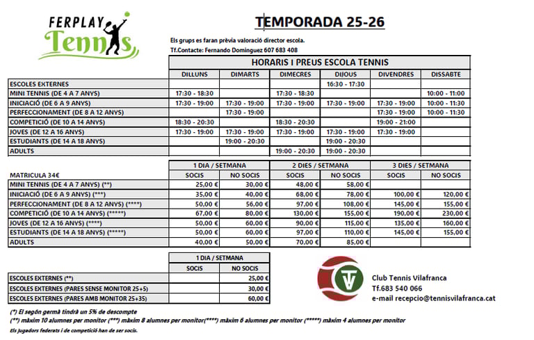 Organitzen intensius de tennis a l’estiu, nadal i Setmana Santa.